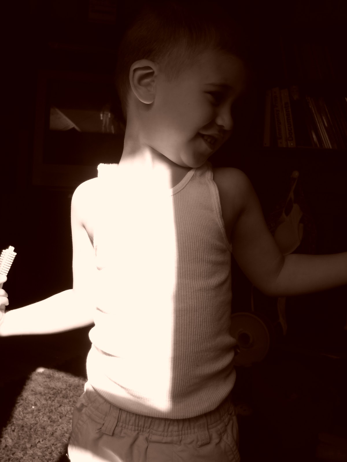 Asher had a hard time doing motorboat face so we got green smoothie (with lots of blueberries) face.
